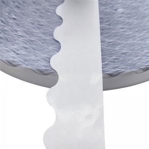 Dalğalı fermuarlı ikiqat tərəfli lent, güclü yapışma funksiyasını gözəl dalğa kənarı görünüşü ilə birləşdirən yeni dizayn edilmiş ikiqat tərəfli lent növüdür.Krujeva kənar dizaynının əsas məqsədi kartona yapışdırıldıqdan sonra sərbəst buraxılan layneri asanlıqla soymaqdır.Güclü yapışma ilə kartonun çox möhkəm bağlanmasına kömək edə bilər.Və BOPP karton mühürleme lenti ilə müqayisədə, daha ətraf mühitə malikdir, istifadə zamanı səs-küy yoxdur və istifadə edildikdən sonra kartonla birlikdə təkrar emal edilə bilər.
