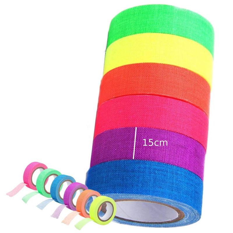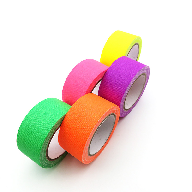Neon Fluorescent Cotton Tape ifite ibiranga ibidukikije bifata neza hamwe na reberi idasigara, irashobora kandi kumurika muri UV cyangwa itara ryirabura, bikwiranye cyane no gushushanya ibirori, akabari, inzu yubucuruzi n’ahandi hantu ho kwidagadurira.