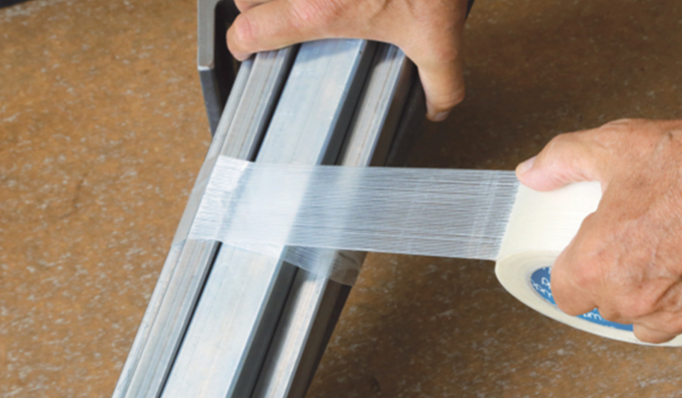 Iiteyiphu ezincamathelayo kunye neefilimu zikwasetyenziswa ngokubanzi kwibala lokwakha, elinokuphucula ukukhawuleza, ukusebenza, kunye nobuhle xa ulwakhiwo lolwakhiwo, ukugqiba kwangaphakathi, ukunyuswa okwakhayo, kunye nofakelo lwefestile kunye nomnyango, njl.